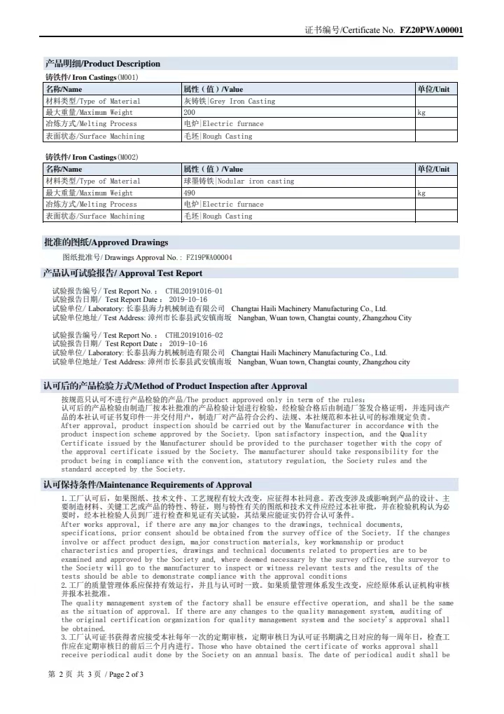 2019年通過(guò)法國(guó)BV船級(jí)社和中國(guó)船級(jí)社認(rèn)證;